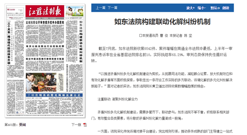 2017年8月11日 《江苏法制报》头版 如东法院构建联动化解纠纷机制
